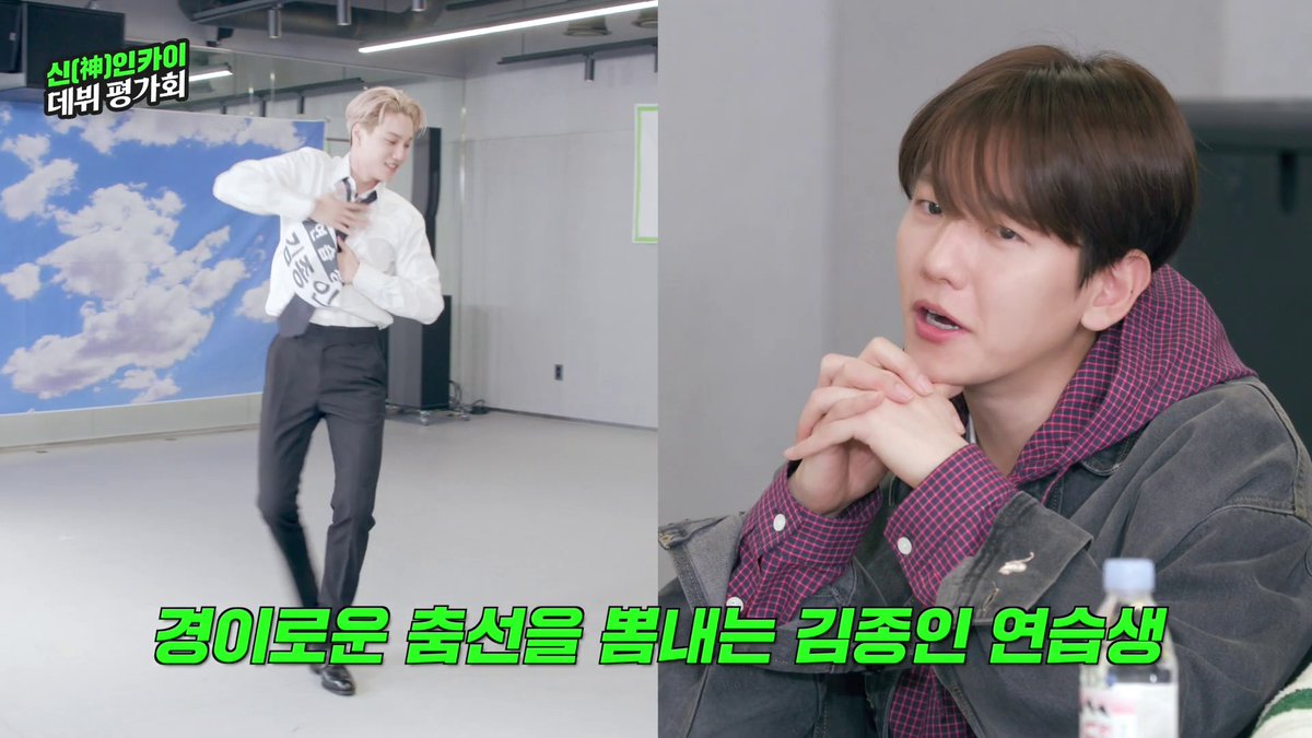 評価書を描いてるセフニとそれを覗き見してるギョンス女子中学生のやりとりでかわいい
