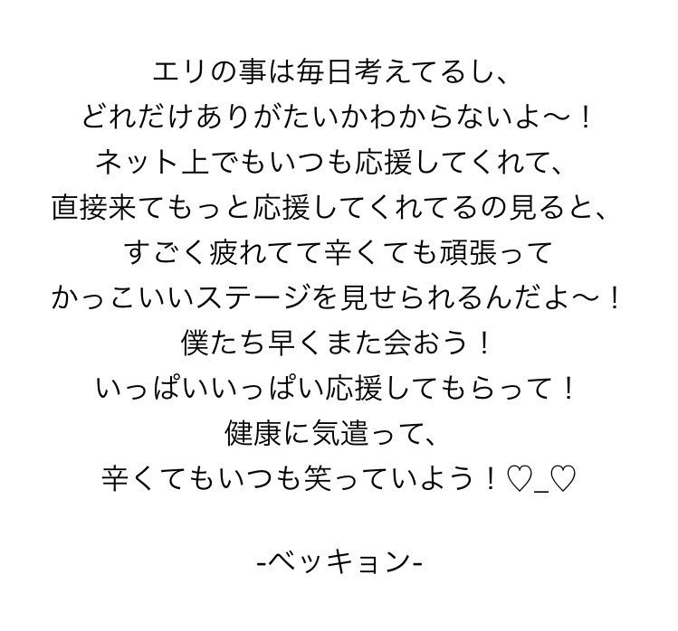 ベク:ステージの上で誕生日を祝ってもらうのは初めてです。本当に感動しました。そして日本の皆さんと一緒に誕生日を迎えることができて嬉しいです
