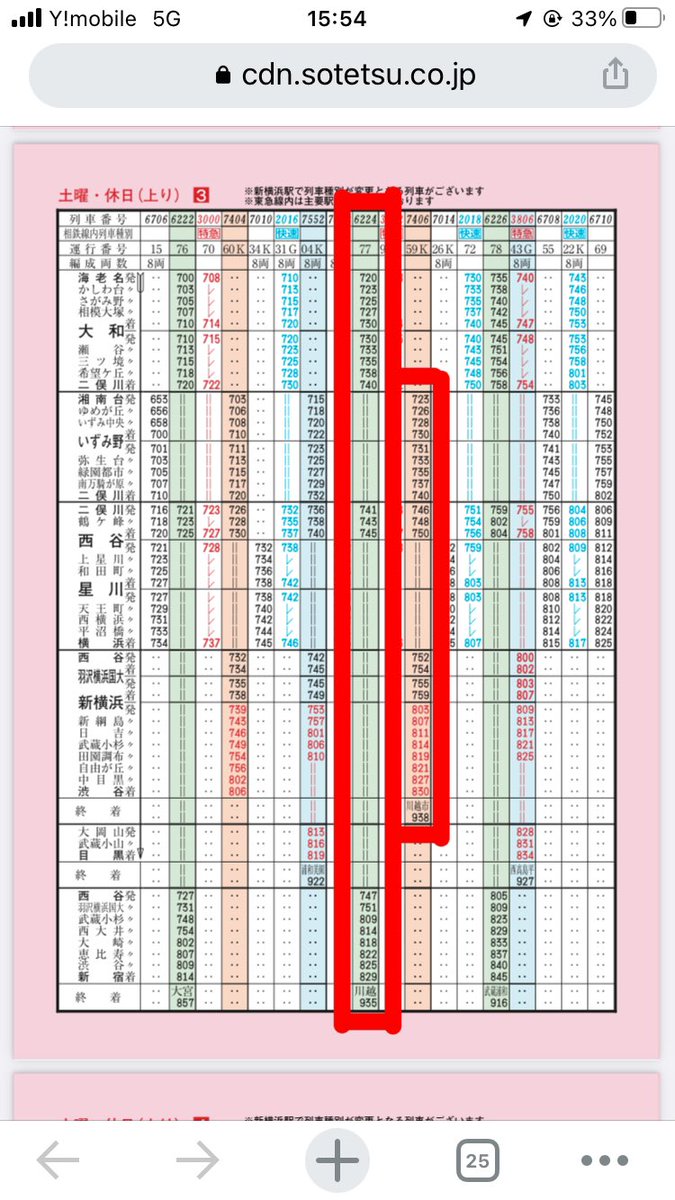 川越市行き (東急線直通) の、二俣川到着前の放送