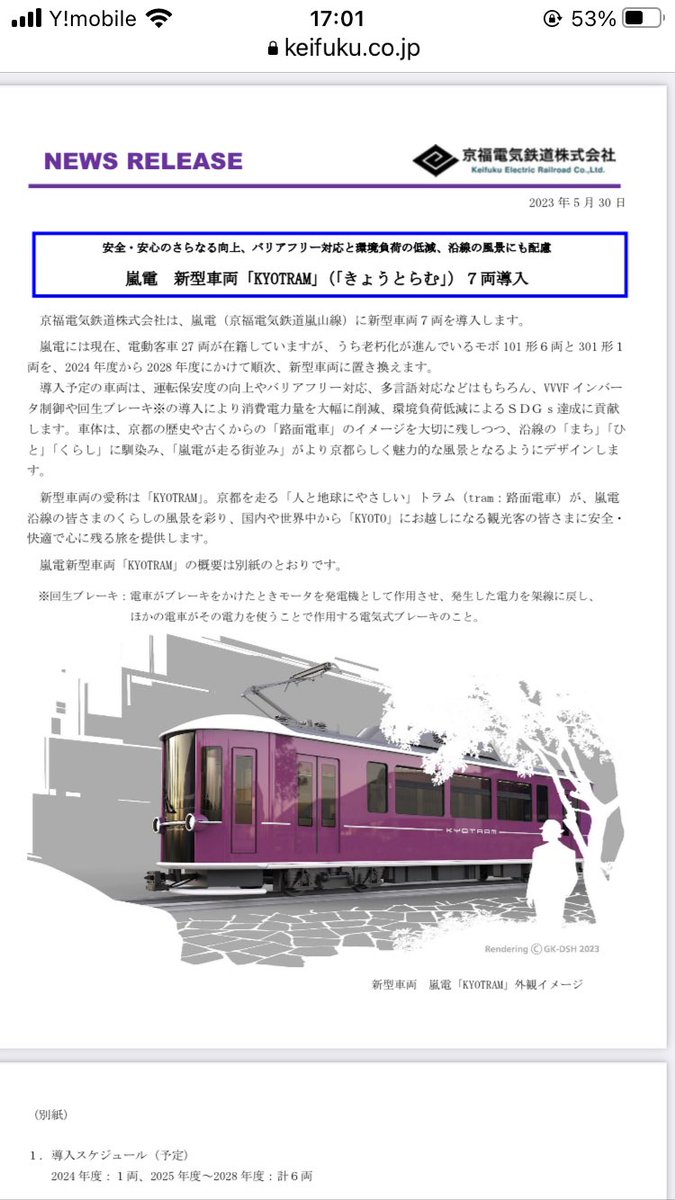 嵐電の新型車両がカッコよすぎてニュースリリース覗きにいったらそれどころじゃなくなった