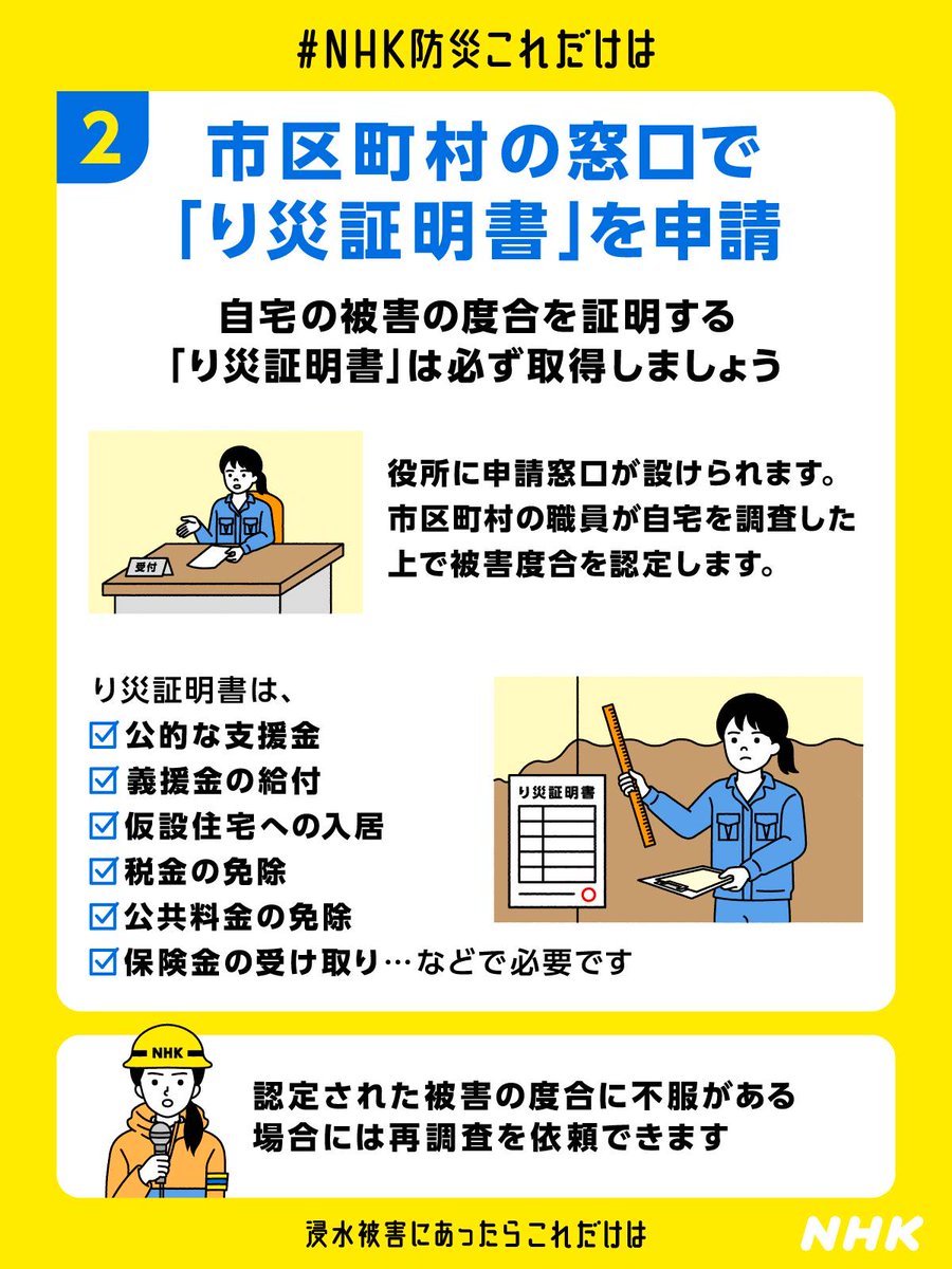 大雨で被災された皆様、心身ともに本当にお疲れのことと思いますが「り災証明」申請の際は写真が大切です