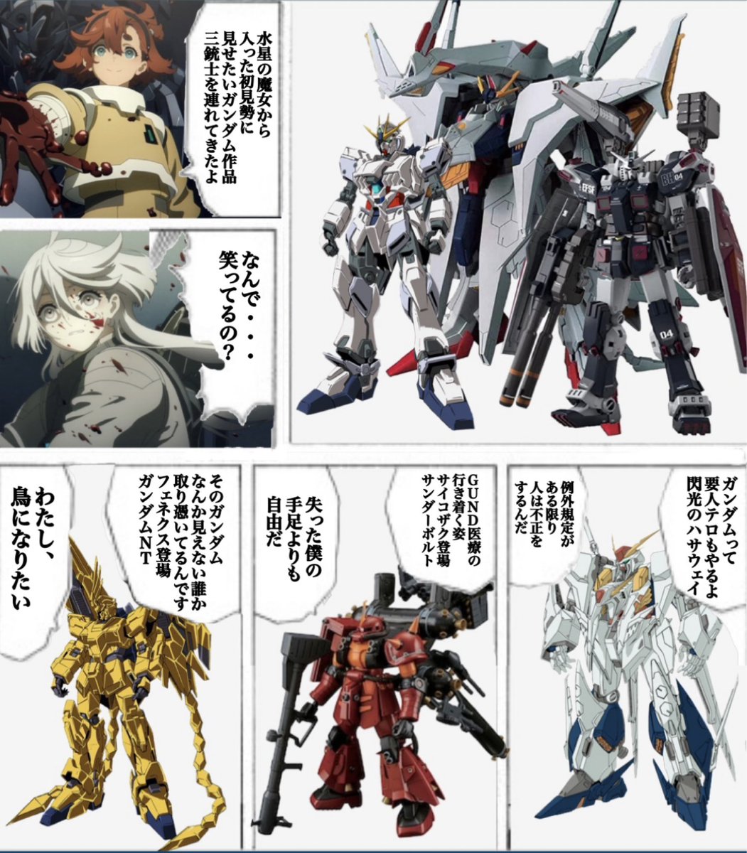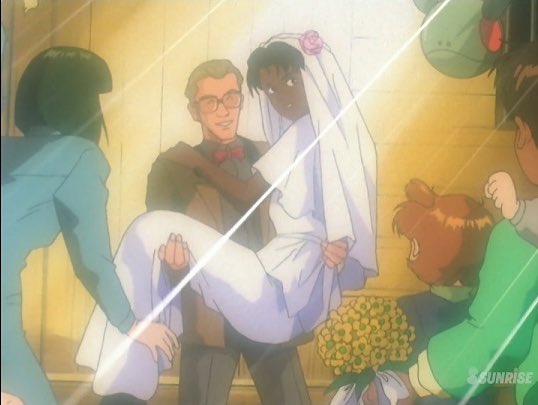 Q.#水星の魔女 の最近の展開はエグすぎて心が削られそうだよ…この後の展開も、ミオリネがスレッタの花嫁になる展開なんて絶望的、怖い想像しかできないし。幸せな結婚式シーンでほっこり…そんなガンダム作品は無いの?