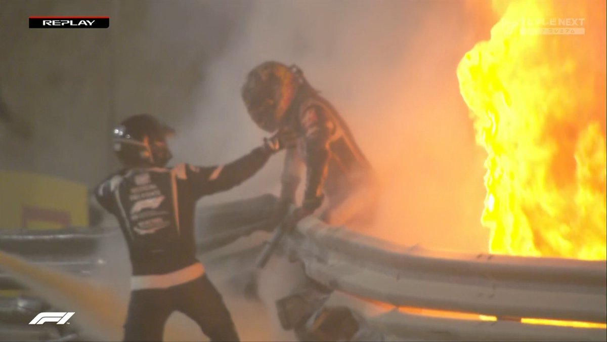 グロージャンは自力で脱出。