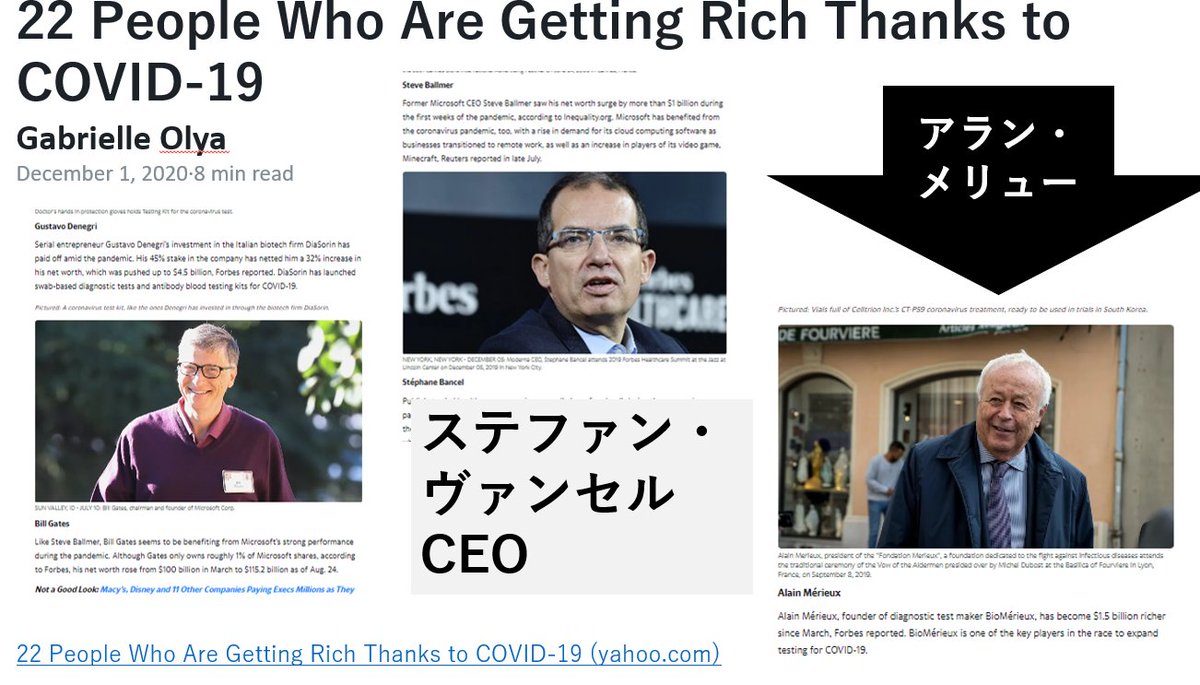 DSの死闘が顕在化! 米英独DSのファイザーに対して、仏DSを背景とするモデルナCEOステファン・ヴァンセル。その後ろはアラン・メリュー&メリュー財団。メリューは中国の公衆衛生分野をご指導、武漢ウイルス研究所の新規建設に深く絡んだ「立役者」。もちろん、その後ろは仏ロスチャ。 twitter.com/hst_tvasahi/st…