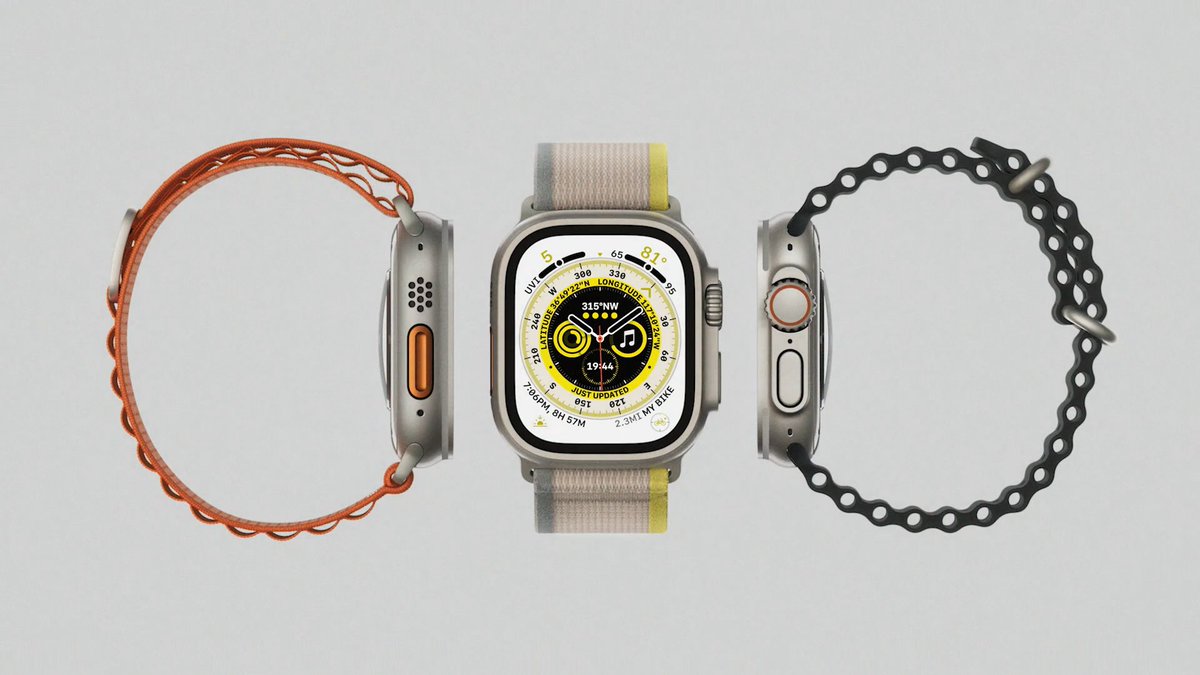 エクストリーム環境に耐えるApple Watch Ultraきたああああああああああああ!!!!!!!!長時間60時間駆動、風の中でも聞き取れるマイク、耐久性、最も高輝度なディスプレイを搭載、やまやトレイル、日が暮れた後のUIなども備える特別仕様 #AppleEvent