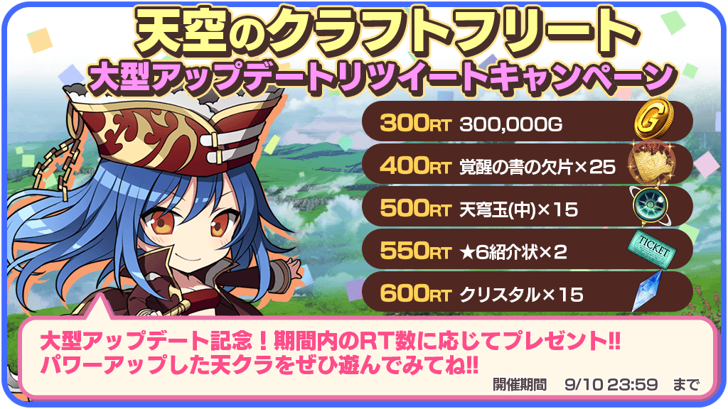 大型アップデートを記念してTwitterリツイートキャンペーンを開催(*'ω'*)