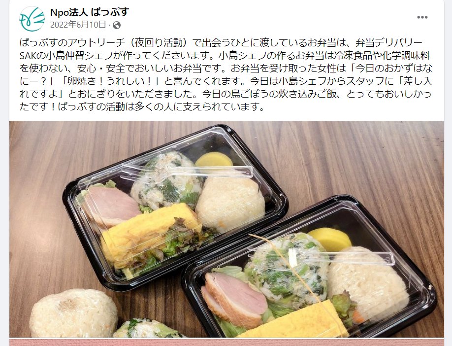 @himasoraakane @YouTube アウトリーチの食費が0円のぱっぷすが提供するボランティア弁当、意外と健康的です。スタッフ人件費は年間2000万も予算を組むのになぜ弁当代を払わないのでしょう。