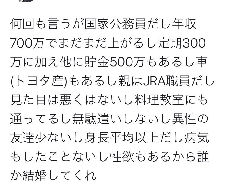 「一般人」の範囲が広すぎる。 低身長薄毛異常男性の私を基準にしろ。