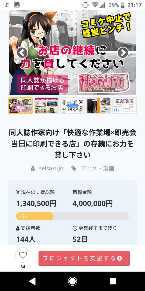 秋葉原制作所 存続の為のCF開始から6日が経過し、有難いことに目標金額の1/3のご支援を頂きました!