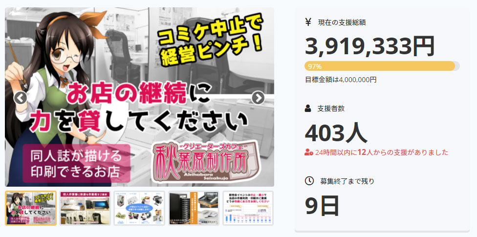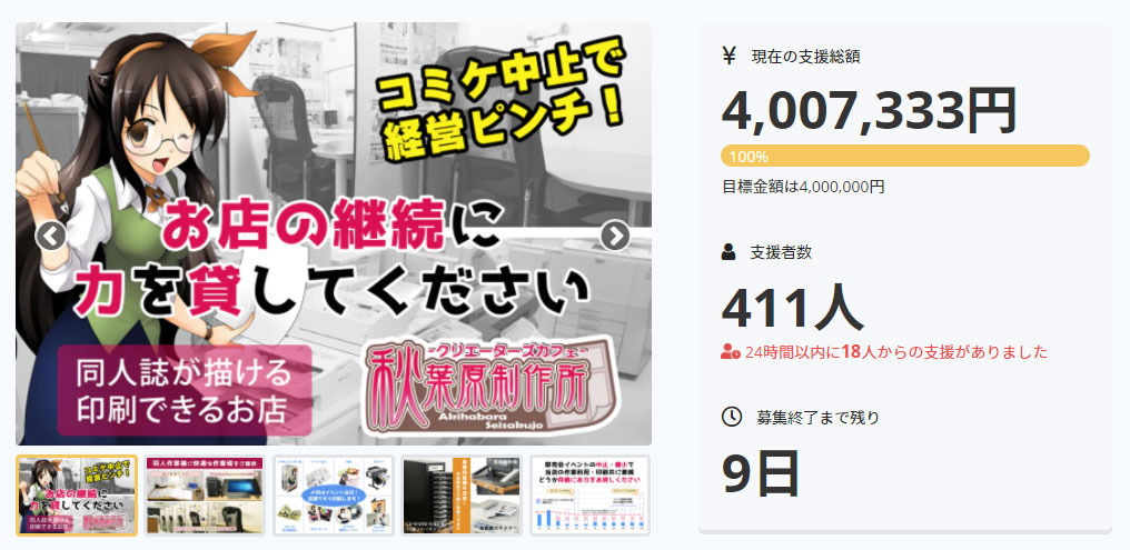 秋葉原制作所 存続のCFを始めて9日が経ちました。