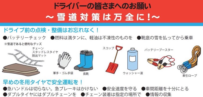 本日夜から山地部および平地部でも積雪が予想されています。冬用タイヤの装着、チェーンの携行と早めの装着をお願いします。 皆様のご理解ご協力をお願いいたします。 凍結等に関する道路情報及びライブカメラ映像→ktr.mlit.go.jp/takasaki/takas…