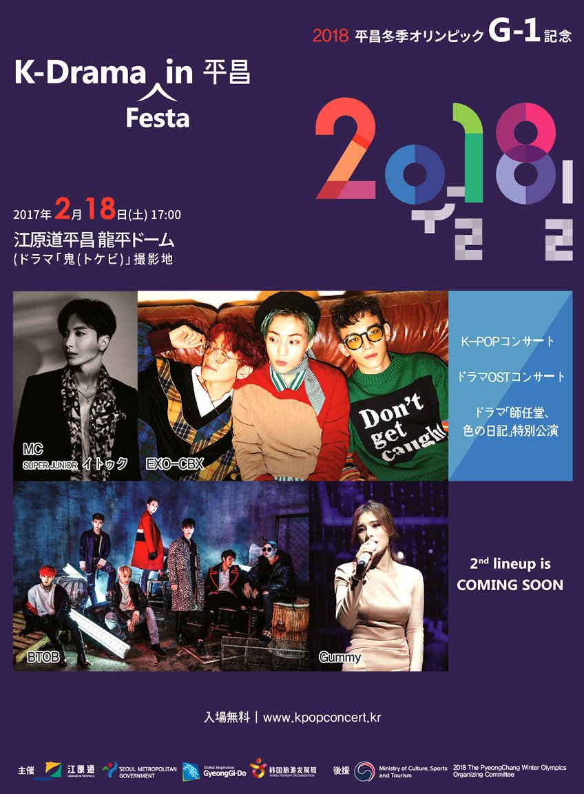 2月18日(土)に開催される「K-Drama Festa in 平昌」に外国人観光客を無料でご招待!イベントの詳細及びチケットの申込みに関してはビジットコリアHPでご確認ください⇒bit.ly/2jDh2Cb