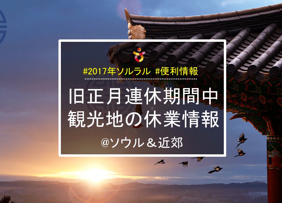 「#ソルラル(旧正月)」連休の1月27日(金)~1月30日(月)までの観光地&ショッピング施設などの休業情報まとめ⇒bit.ly/2iHIkv6