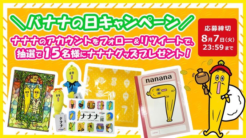 @TVTOKYO_nanana をフォローして、この投稿をRTしてね🎶抽選で10名様にプレゼント🍌締切は1/9 23:59まで!