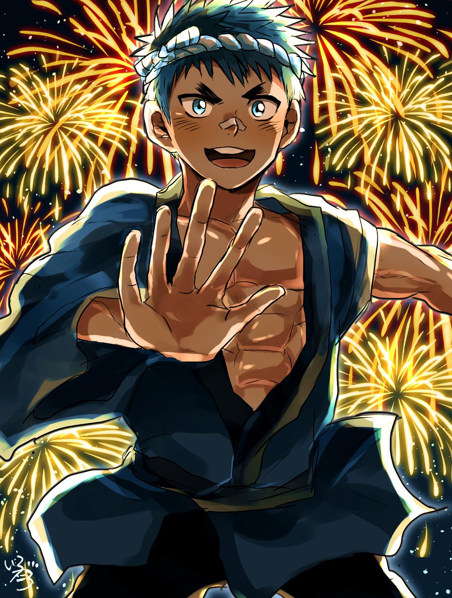 短髪男子わんどろ「花火」#短髪男子版深夜の真剣お絵描き60分一本勝負