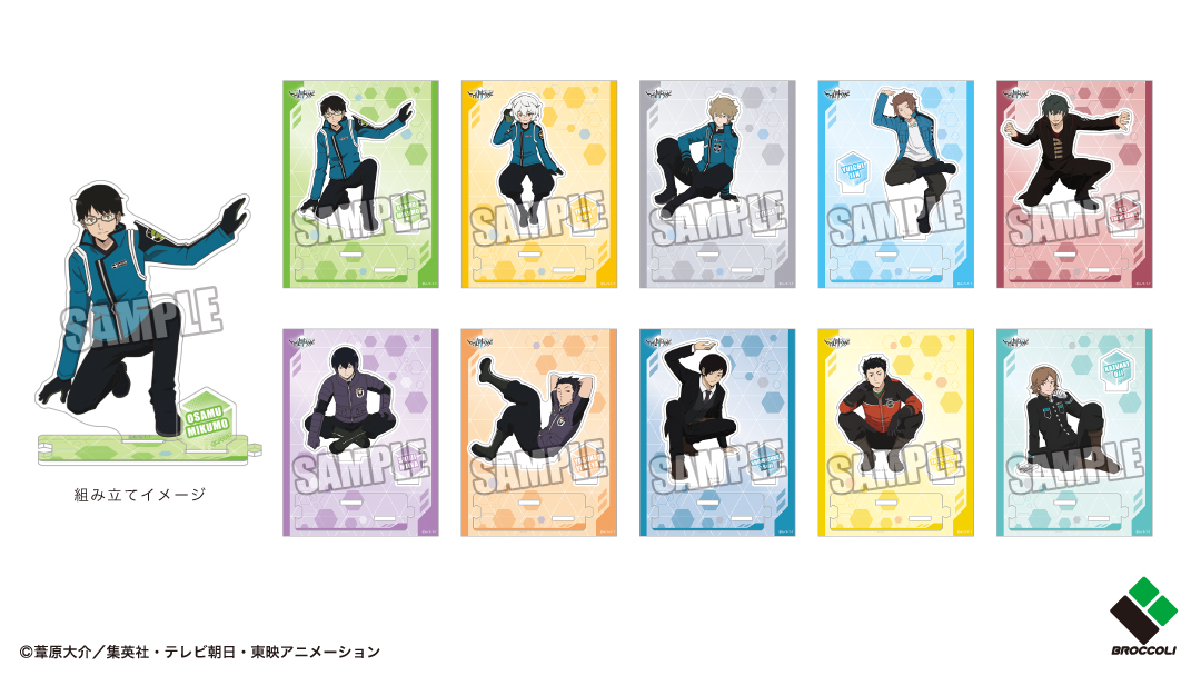 TVアニメ【ワールドトリガー】描きおろしイラストを使用した、アクリルスタンド全10種や、クリアファイル全10種などの多数アイテムが2022年6月24日(金)に発売決定!ショコラワッフルクッキーのおまけはイラストシート全10種からランダムで1種封入なので、だれがでるかはお楽しみ!#ワールドトリガー