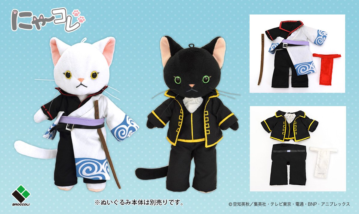 【銀魂】お着替え大好きなねこのぬいぐるみシリーズ『にゃーコレ』専用衣装 銀魂「坂田 銀時」「真選組」2種が7/29(土)発売です! 特設サイト⇒broccoli.co.jp/nya-colle/ #gintama #にゃーコレ