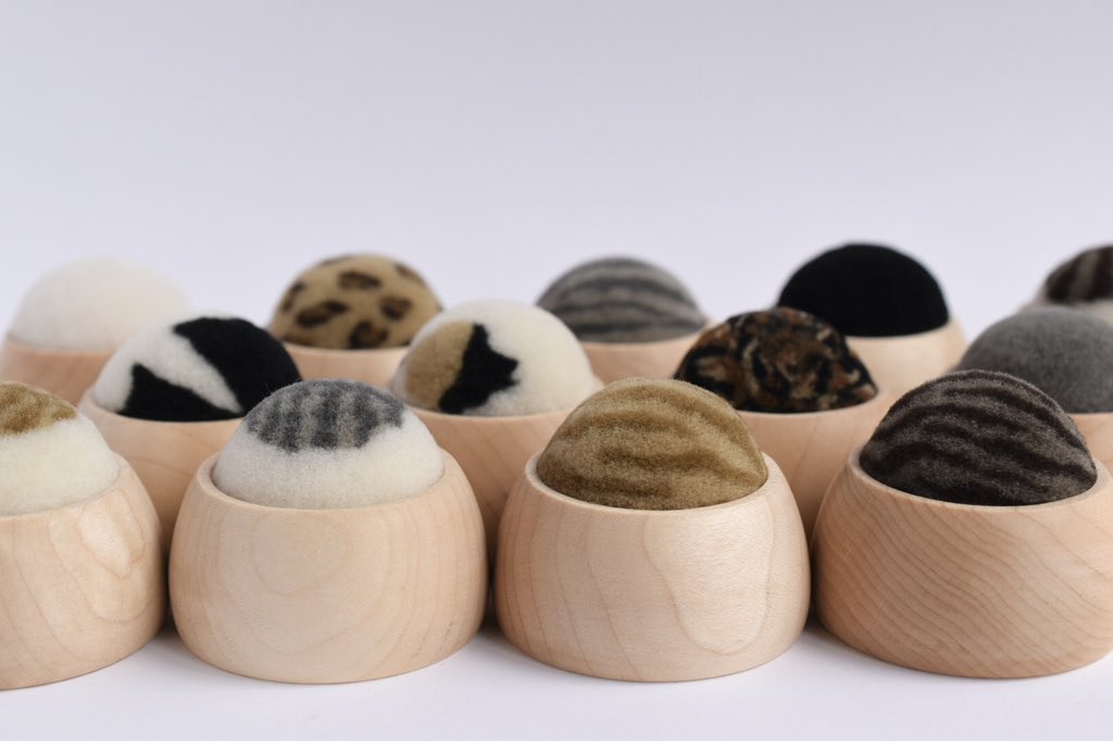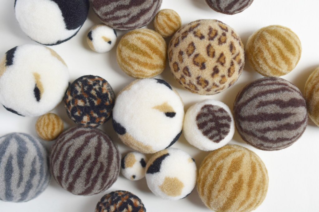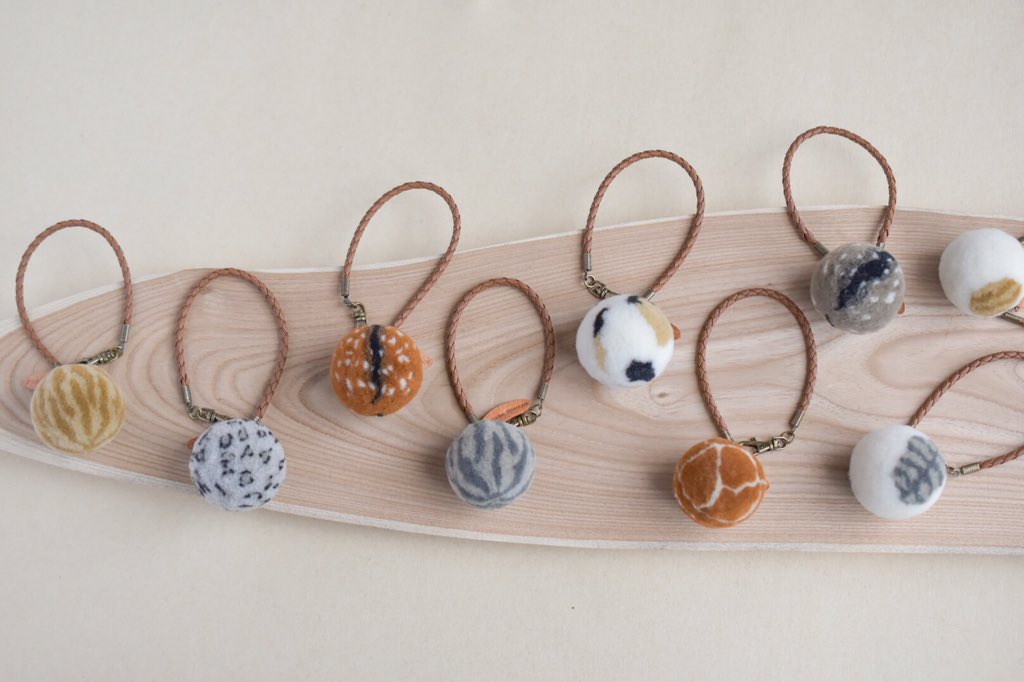 羊毛で、猫の髭山や色んな動物柄のけだまをつくっています。