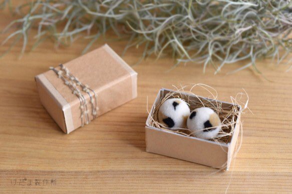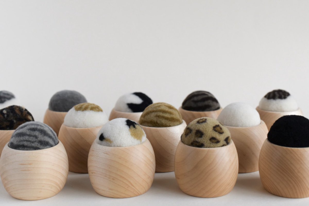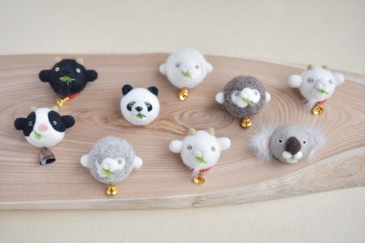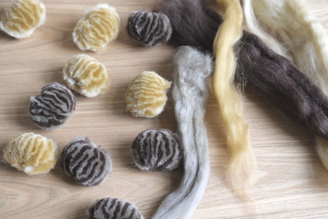 羊毛で、丸い動物たちを作っています。