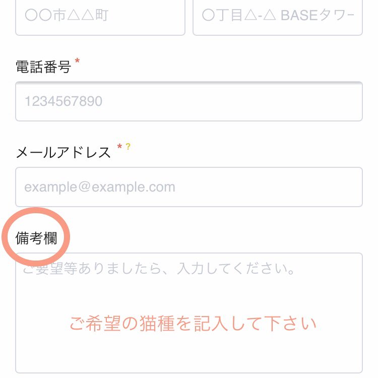 猫種は備考欄にご記入下さい。