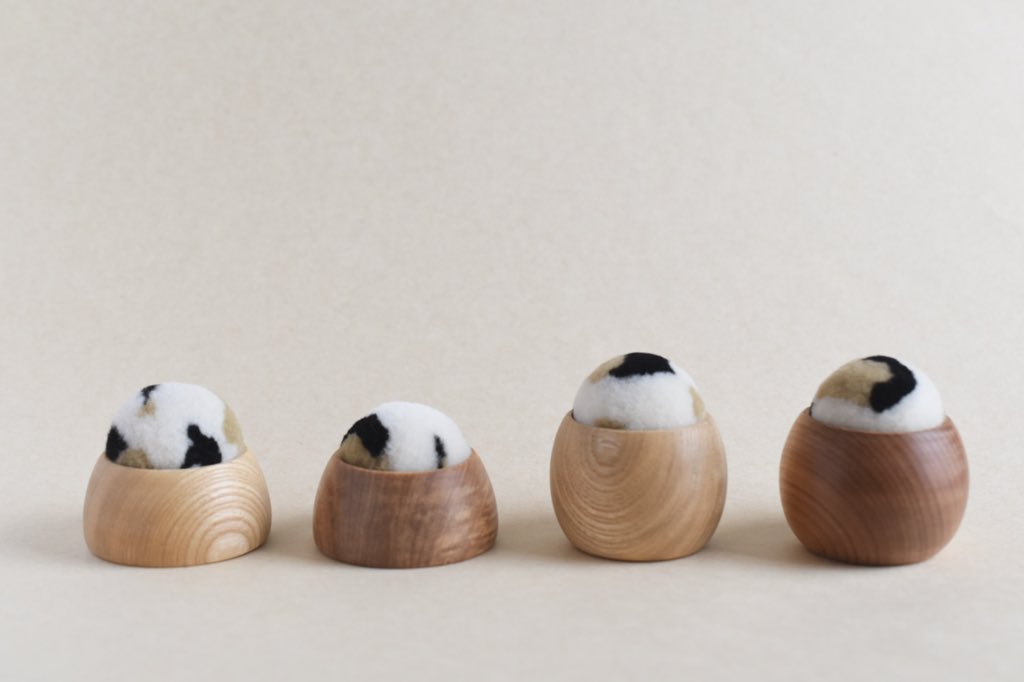羊毛で、丸い動物たちを作っています。