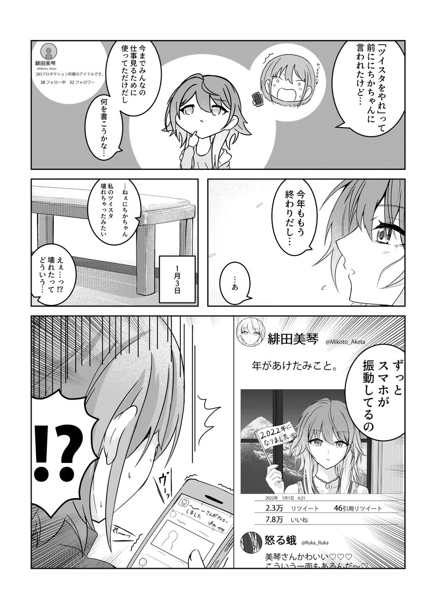 ツイスタに投稿をする緋田美琴さんの漫画です。