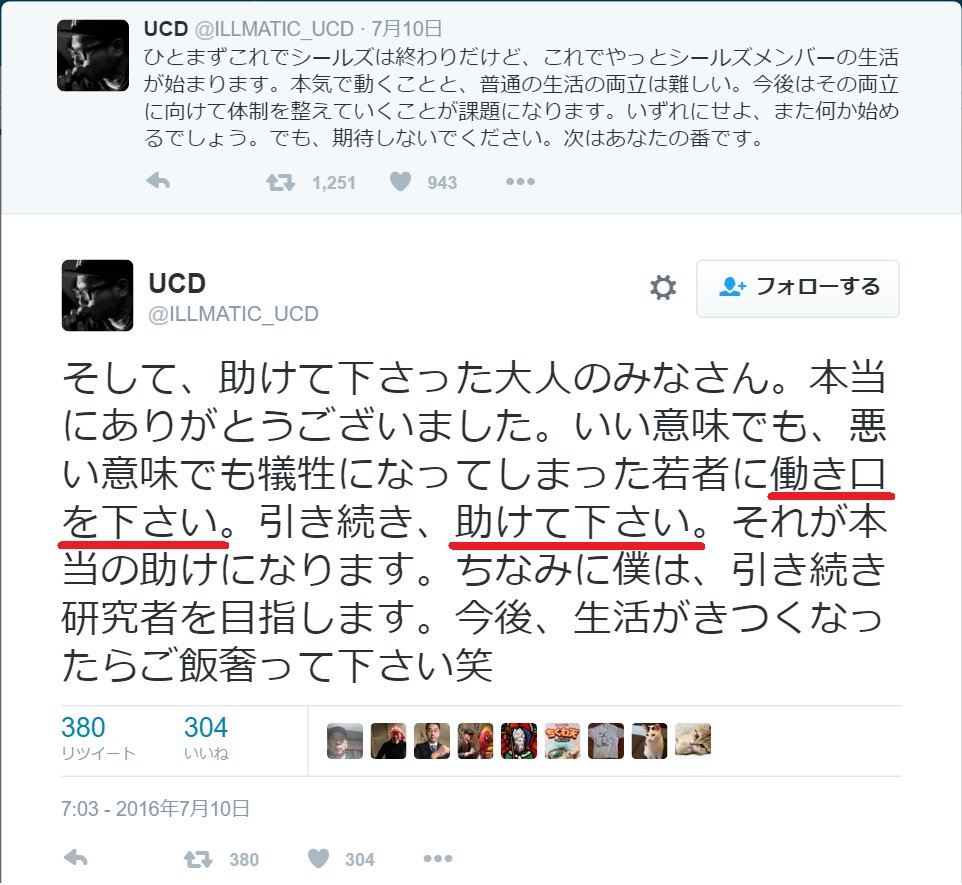 「でも代表者は一橋大学院入れたぜ」というと「騒ぎによる知名度枠で代表だけ美味しい思いはズルいですね」と。