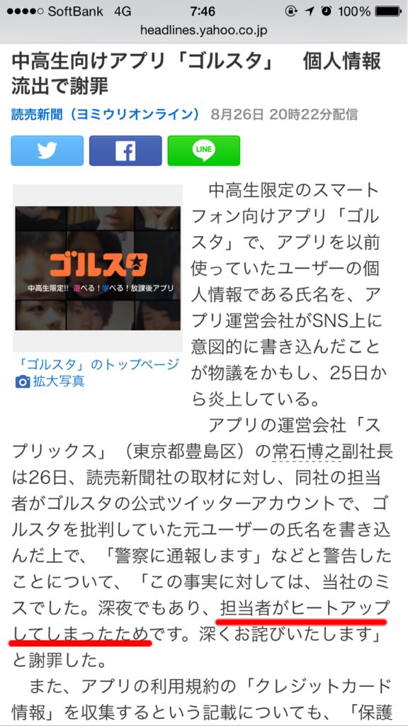 「ゴルスタ 収集した個人情報を公開し未成年を脅迫」