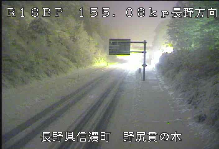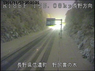 国道18号野尻付近は、17日20時30分現在、積雪があり路面が滑りやすくなっています。ご通行の際には注意していただくとともに冬用タイヤの装着やタイヤチェーンの携行をお願いします。