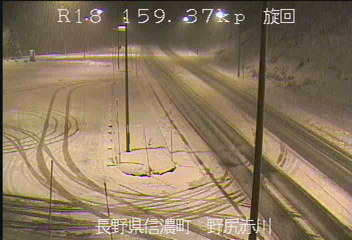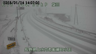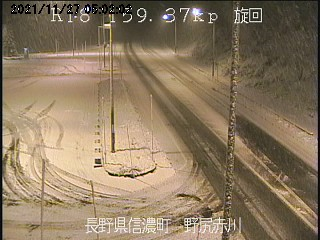 降雪により一時的に国道18号長野市豊野大倉地先(大倉チェーン脱着所)で23時から上越方面行きを通行止めを実施中です。