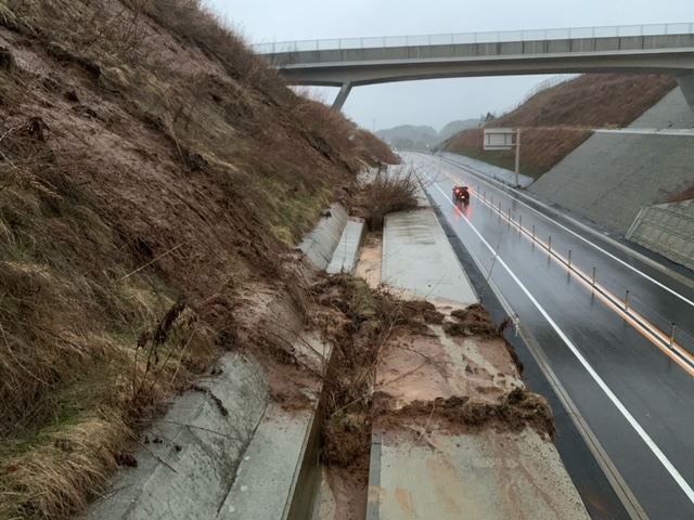 隣接地の #地すべり により、 終日(24時間)片側交互通行規制を実施しておりましたが、本日【2月1日(火)6時】に全面交通開放となりました。