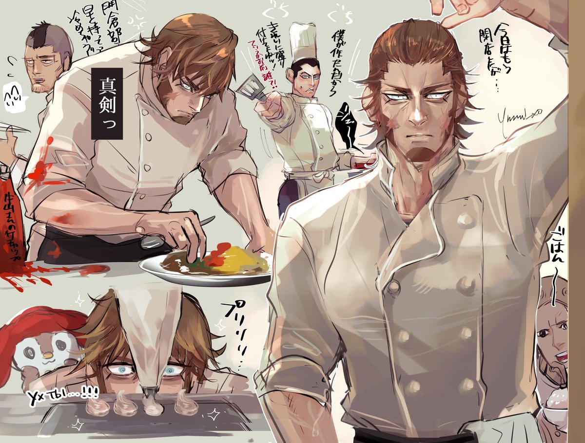 コックコートいいね、シェフパロいいね!!と思って描き始めたら途中からコラボカフェが混ざって来てカオスになってしまった