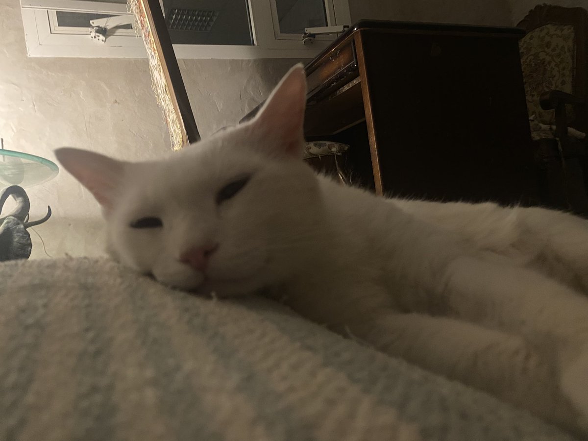 気持ちよく寝てるとこ顔を叩かれて目が覚めた。ロウネーンさんのスペース空けてあるんだからわざわざ起こさなくていいのよ。。そして起こしておいて先に寝る。。 twitter.com/hanamomoact/st…