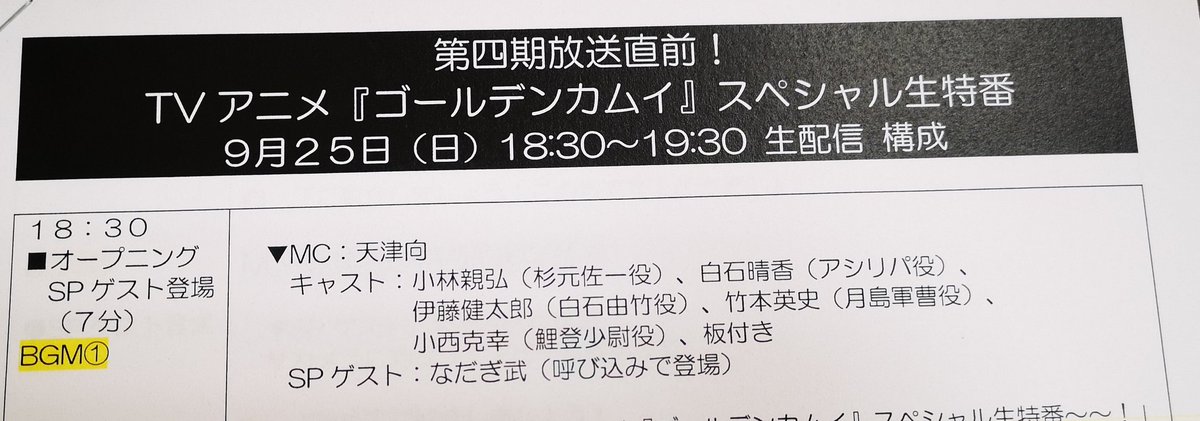9/25(日)18:30~第四期放送直前!TVアニメ『#ゴールデンカムイ』SP生特番配信。