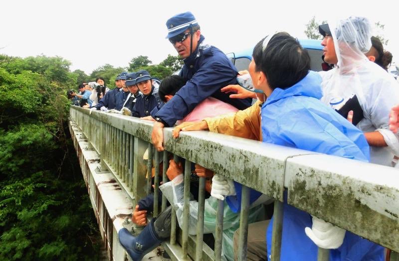 橋の欄干にしがみつく市民、強制排除し作業員誘導 米軍ヘリパッド建設 okinawatimes.co.jp/articles/-/611…