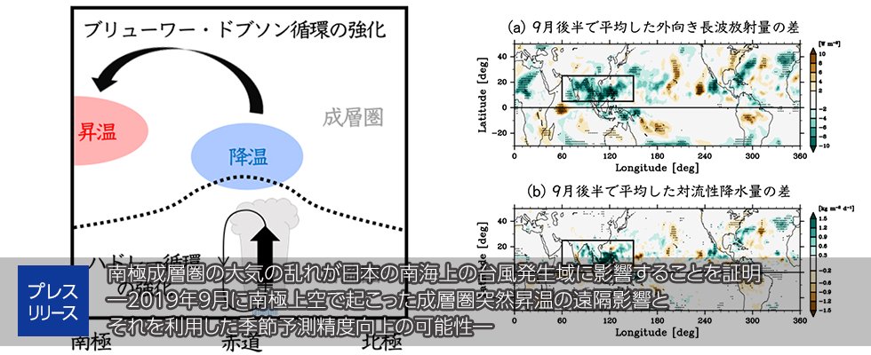 【プレスリリース】南極成層圏の大気の乱れが日本の南海上の台風発生域に影響することを証明