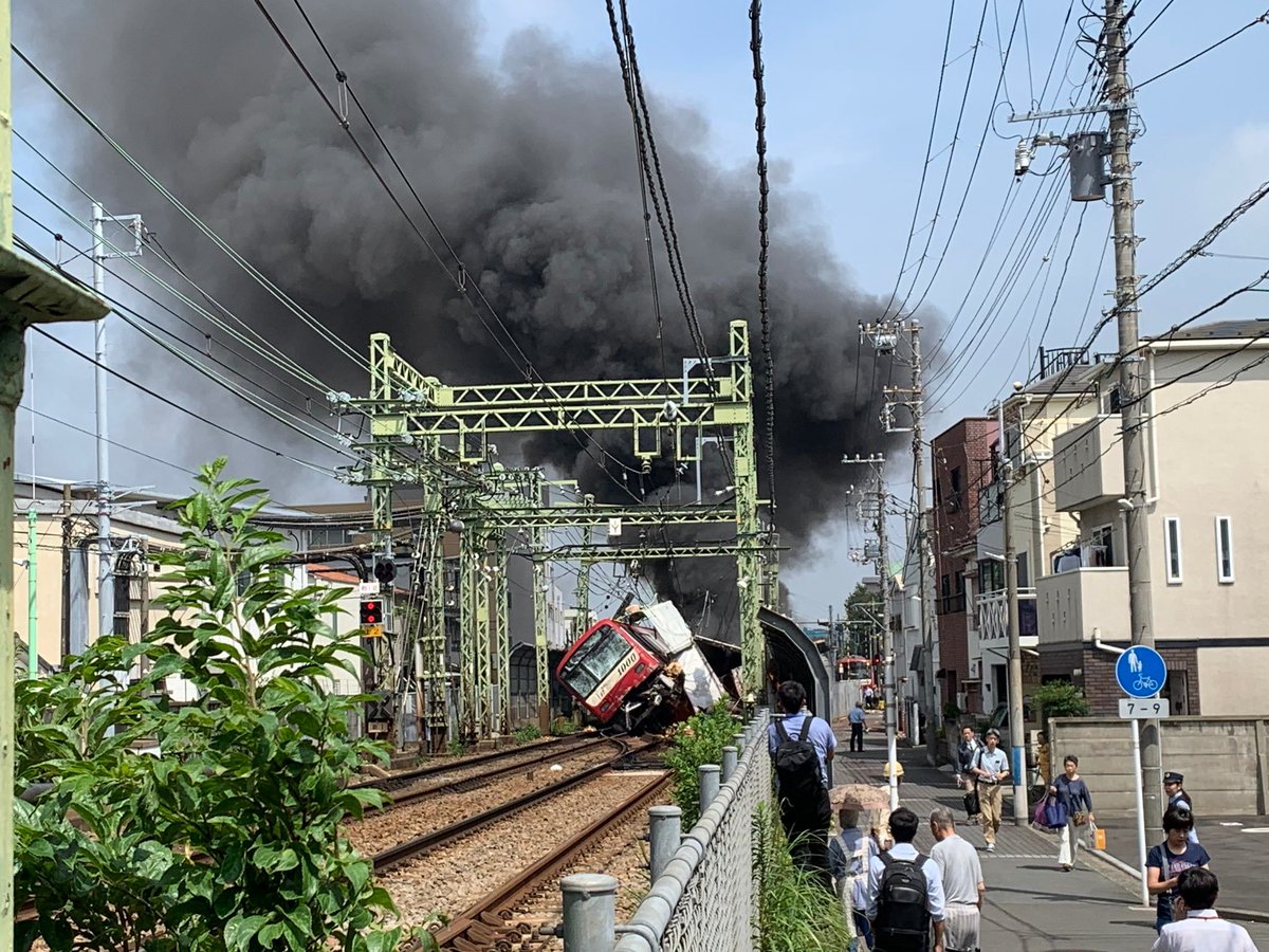 【火災】京急本線 神奈川新町駅~仲木戸駅の踏切事故で電車が脱線 トラック爆発の大惨事 9/5 - NAVER まとめ matome.naver.jp/odai/215676522… 運転見合わせ