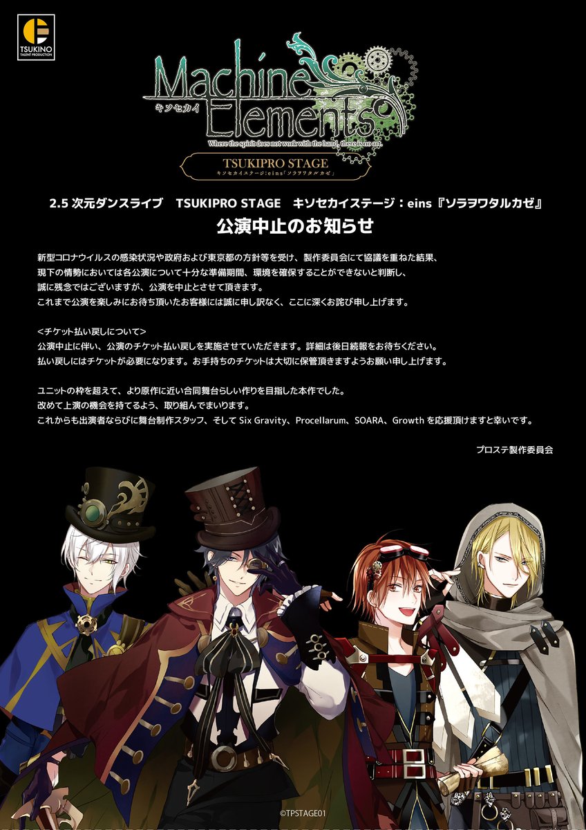 今後は改めて上演の機会を持てるよう取り組んでまいります。以上、何卒ご理解ご了承の程、お願い申し上げます。