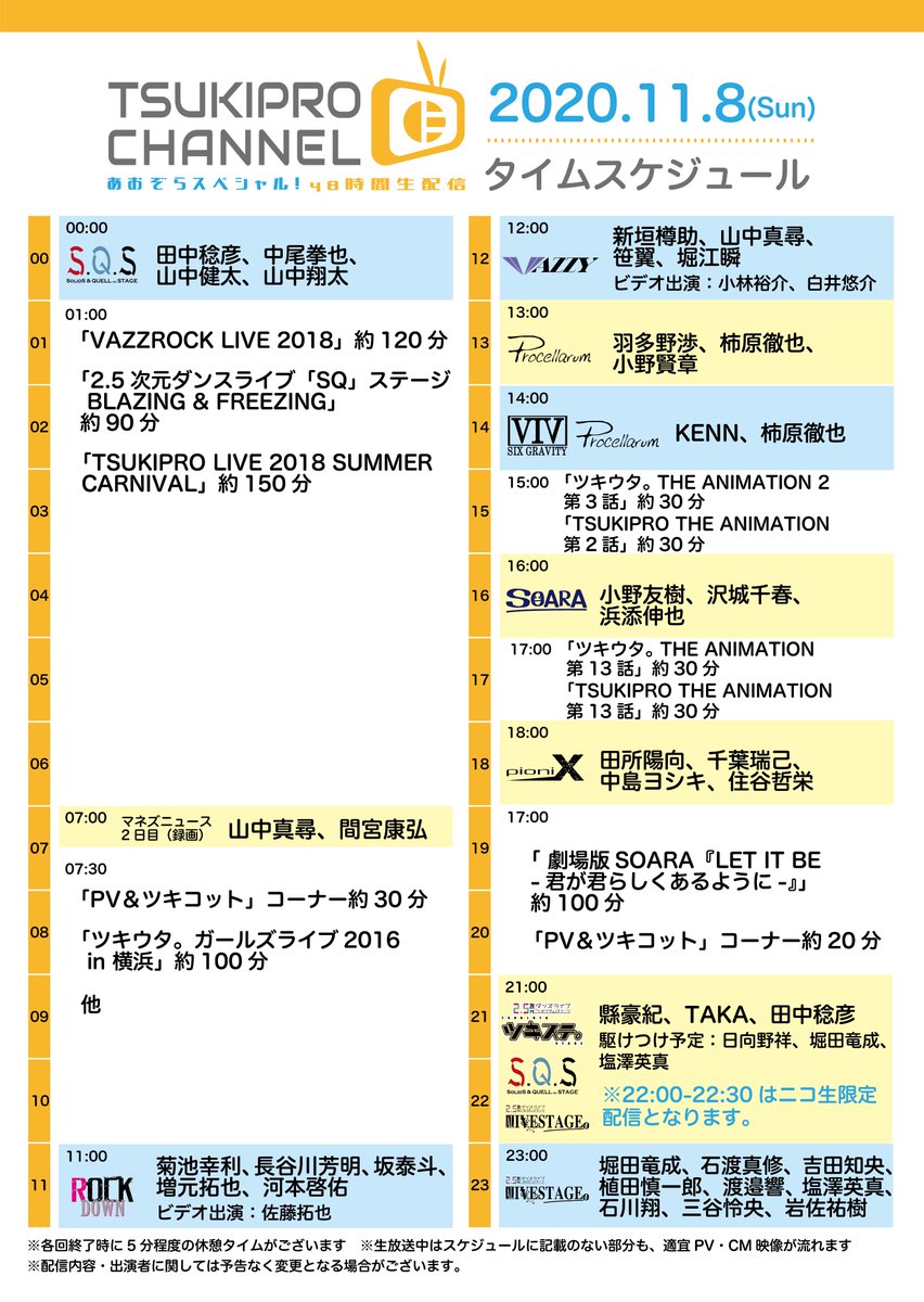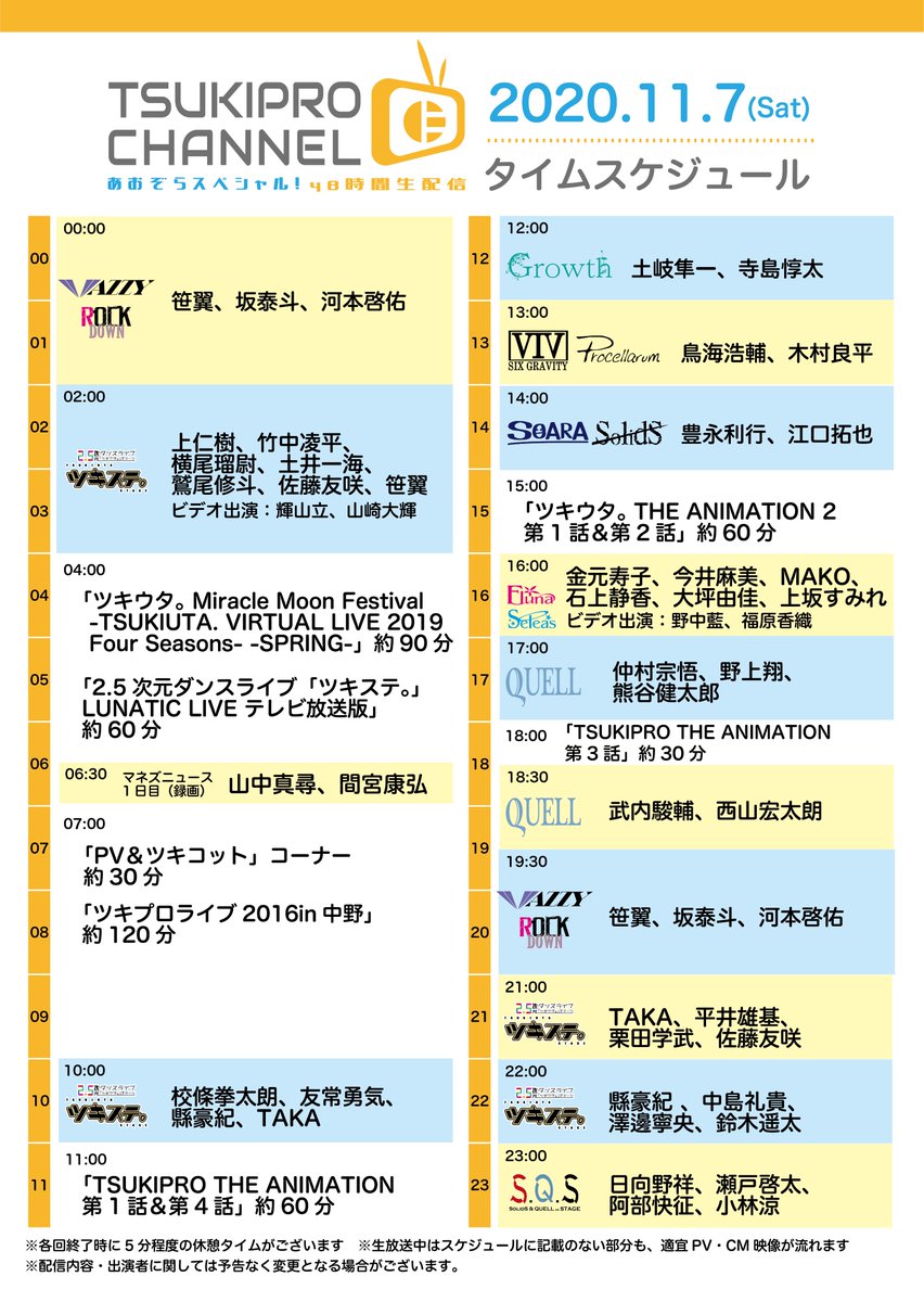 ★「ツキプロチャンネルあおぞらスペシャル!48時間生配信」出演キャストとタイムスケジュールを公開★