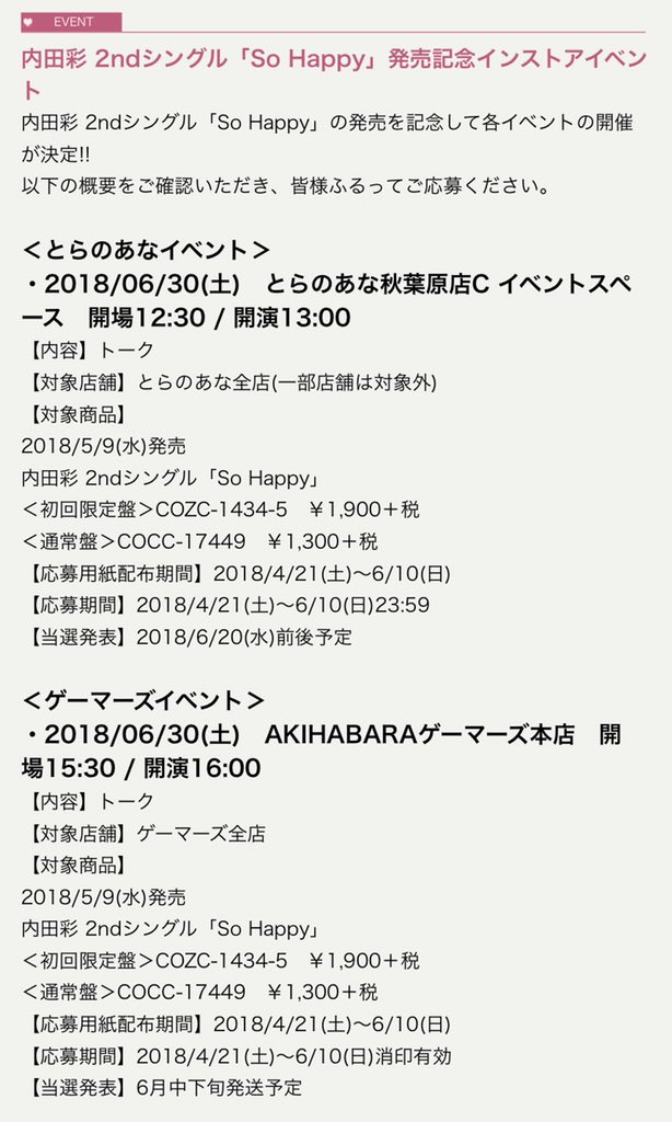 【So Happy 発売記念イベント情報】