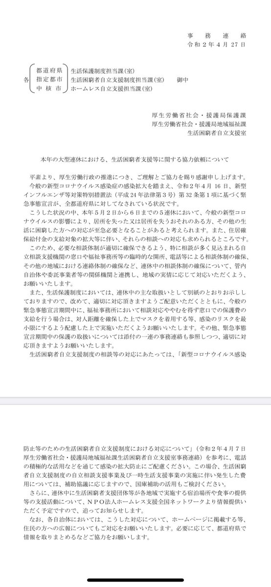 この連休、公的窓口が閉じてしまう自治体もあります。生活に困ってしまっている人への民間の相談先をまとめました。→GW(5連休)中の生活に困ったときの相談先リスト(大西連) - Y!ニュース news.yahoo.co.jp/byline/ohnishi…