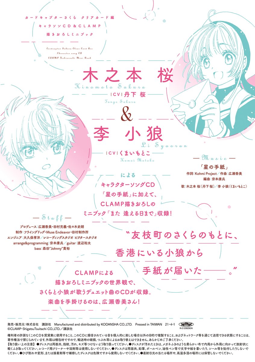 木之本桜(CV丹下桜)&李小狼(CVくまいもとこ)キャラソンCD「星の手紙」