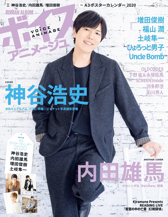 12月10日発売予定「ボイスアニメージュ No.43」の内容を公開! 今号のCOVERは神谷浩史さん、ANOTHER COVERは内田雄馬さん。増田俊樹さん、福山潤さん、土岐隼一さんほか撮り下ろし満載です。詳細はアニメージュプラス(animageplus.jp)へ☆
