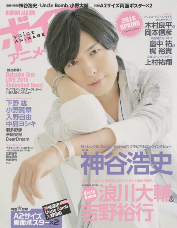 【9月20日発売】「ボイスアニメージュ No.42」のCOVERは、12月4日に12thシングル「Deep&Holic」をリリースする小野大輔さん!! 気になるニューシングルについていち早くお聞きしたほか、ジャケット撮影密着レポートなども♪ その他、掲載内容などアニメージュプラス(animageplus.jp)へ!