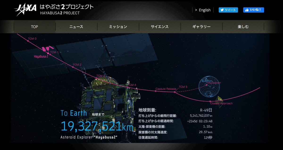 OSIRIS-RExのタッチダウン、非常にスムーズな運用で素晴らしかったですね。さて、「はやぶさ2」ミッションも進めます。日本時間で明日(10/22)の18時頃、軌道修正TCM-1を行います。いよいよ、リエントリーに向けた探査機の最終誘導が始まります。