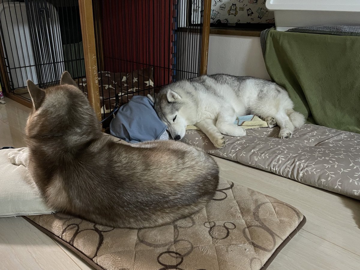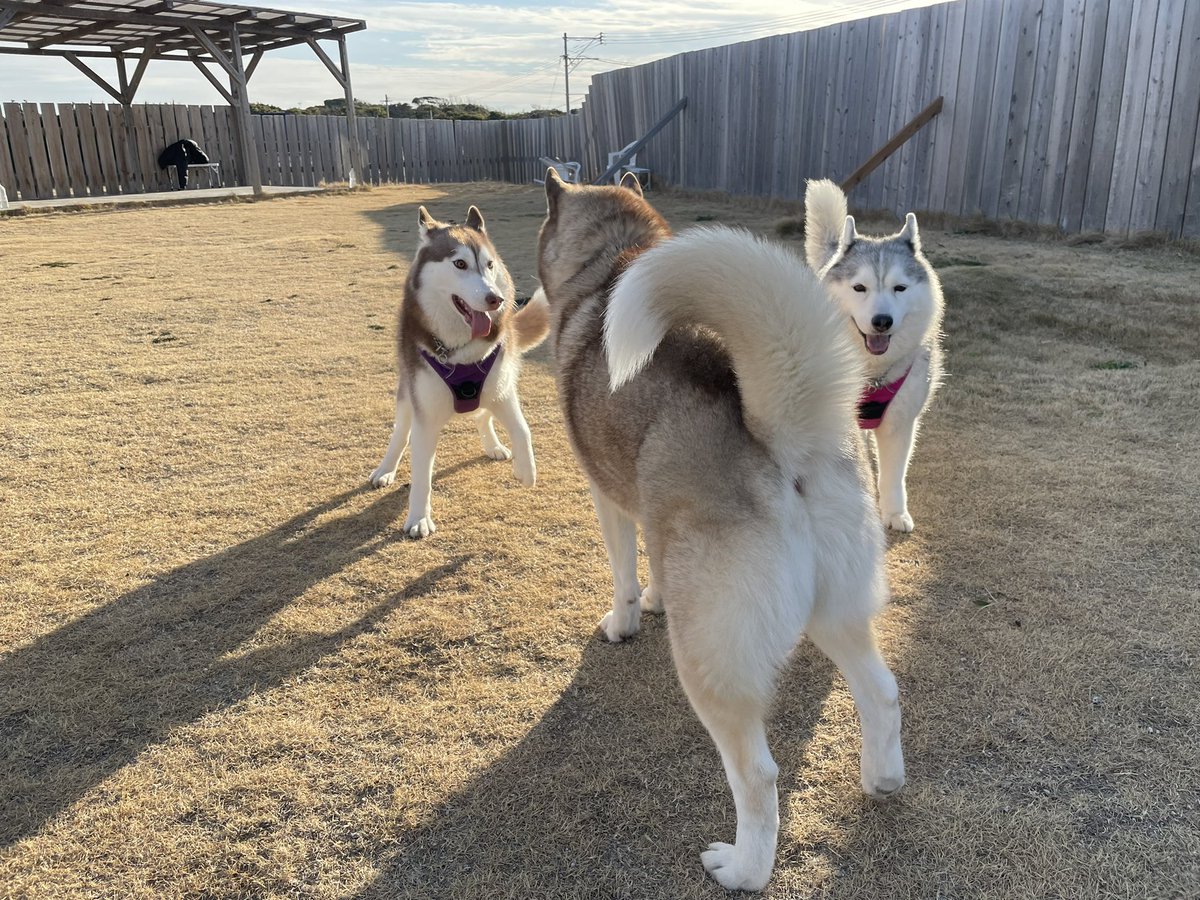 今日はシャンテの兄弟のサンちゃん(@panpapapan13 )とご近所さんのジヨンくん(@soryong_husky )と遊びました!おっきくて可愛かった!大きいけどなつっこいバブちゃんでとても可愛い〜!!