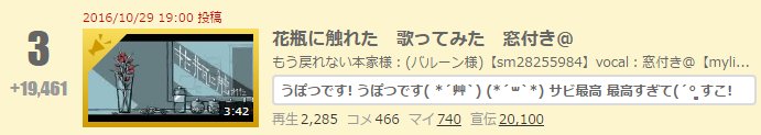 花瓶に触れた 歌ってみた 窓付き@ (3:42) nico.ms/sm29930640 #sm29930640 毎時3位ありがとうございます!