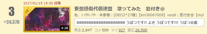妄想感傷代償連盟 歌ってみた 窓付き@ (4:28) nico.ms/sm30438877 #sm30438877 毎時3位ありがとうございます!