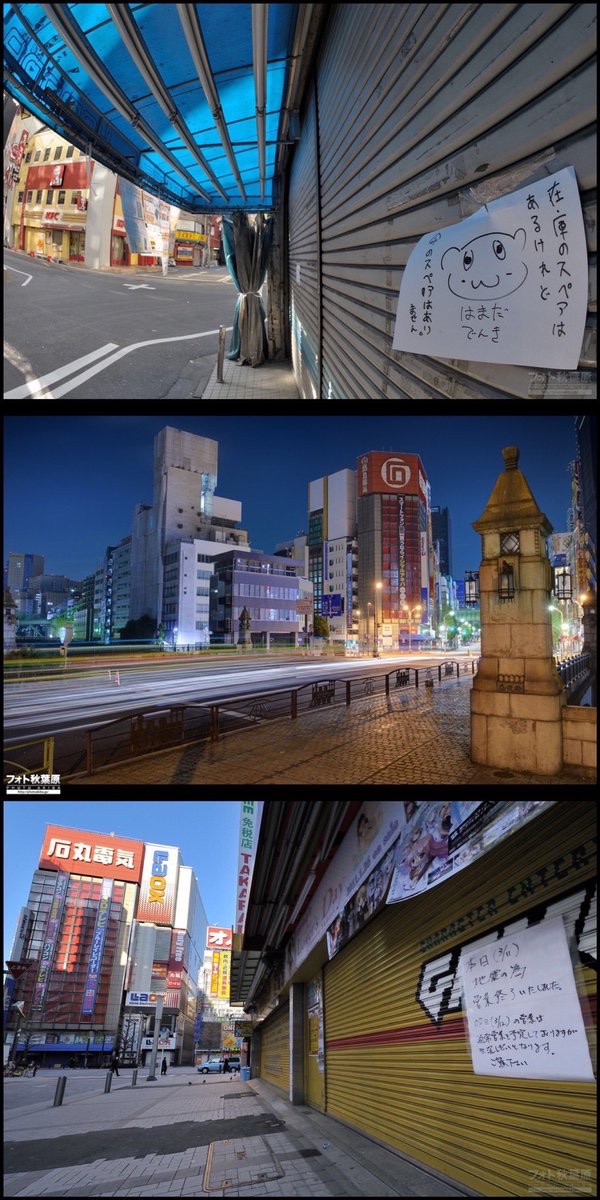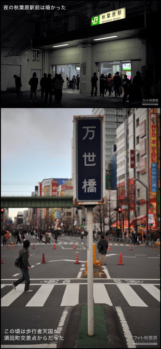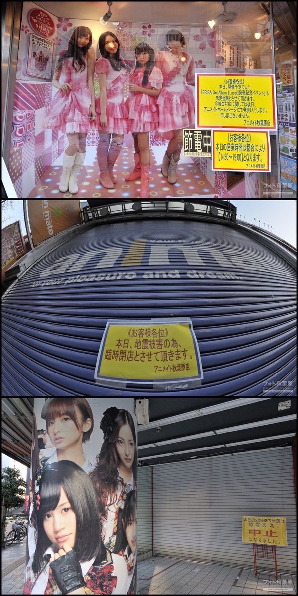 秋葉原も外壁の崩落・店舗の早終い・イベント中止・建て替え前のラジオ会館に亀裂・普段は消えない万世橋の灯籠が節電で消灯など、多数の影響がありました。リンクは当時の様子を写した写真集です。