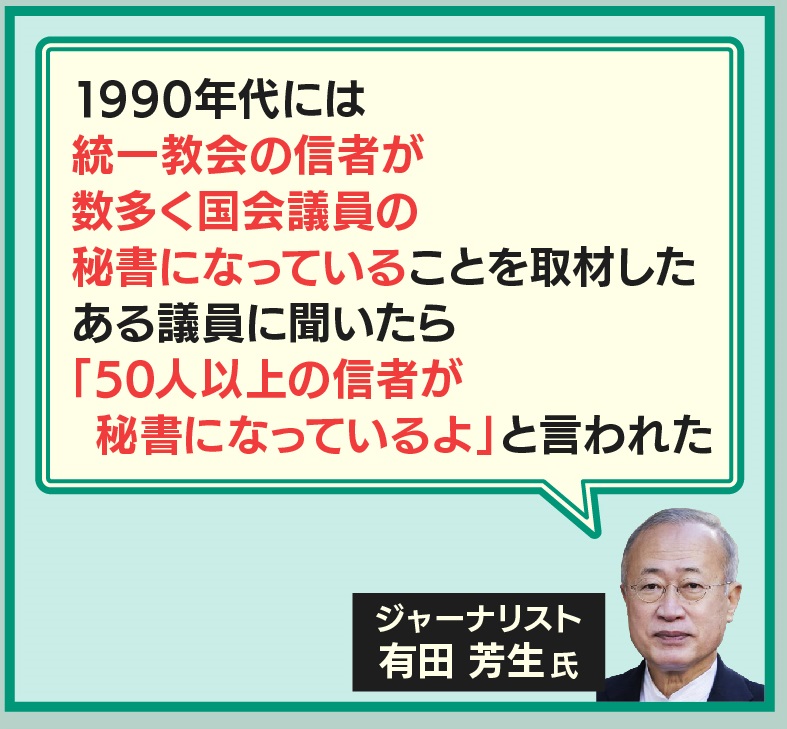 有田さんが、12年間の議員生活で見た、国会議員と旧統一教会の関係です。